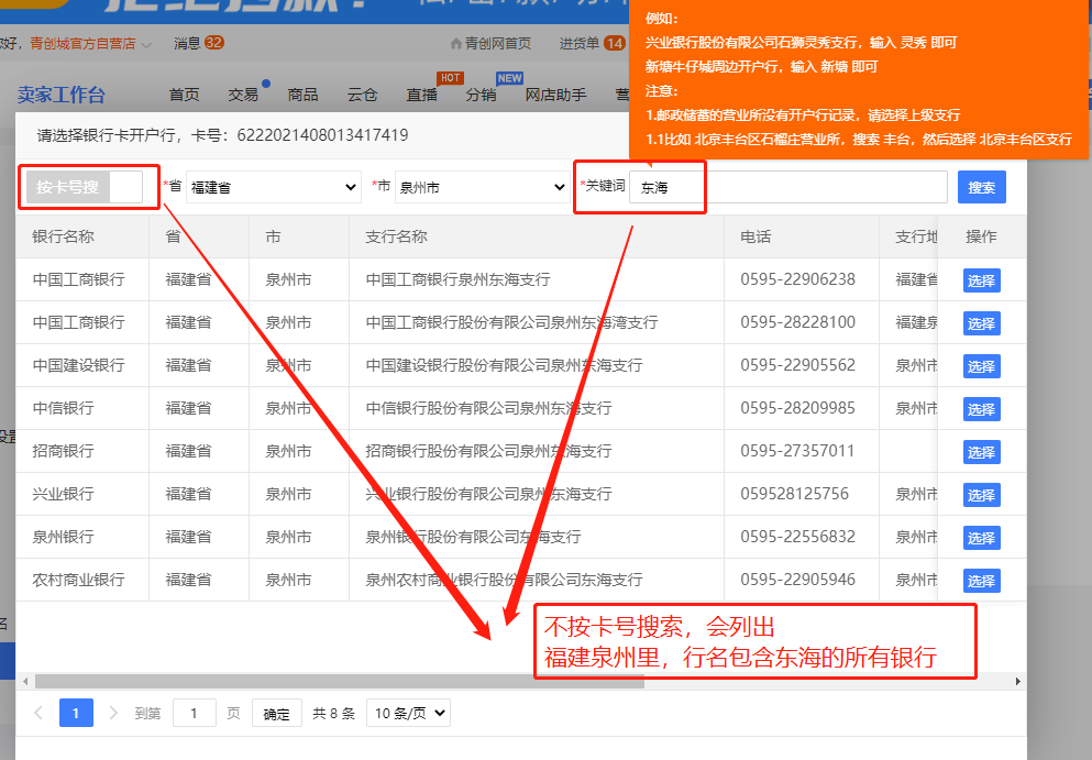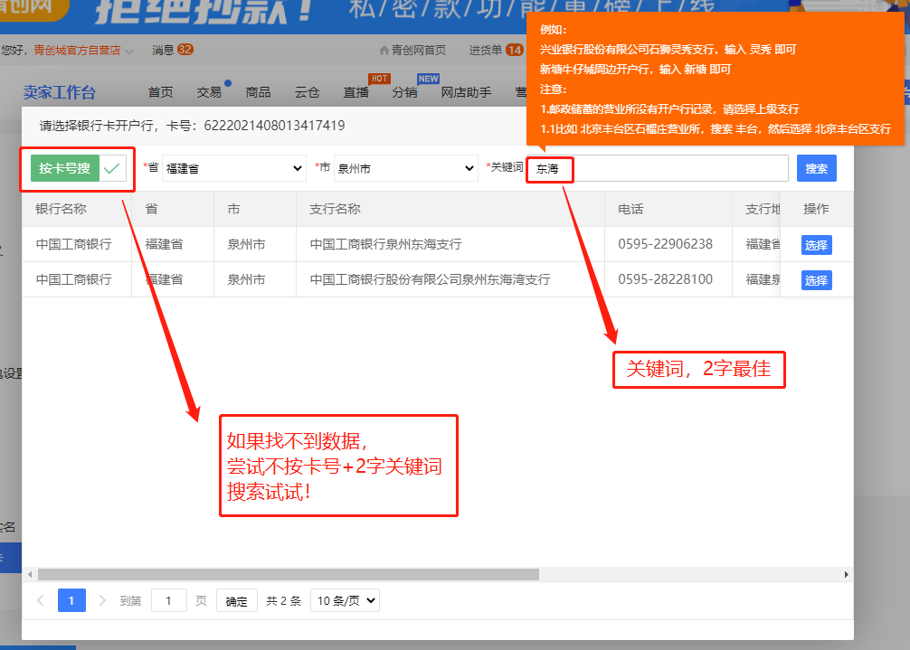 千万不能输入,建行,工行等这样银行简称,这样是找不到分行数据的;
